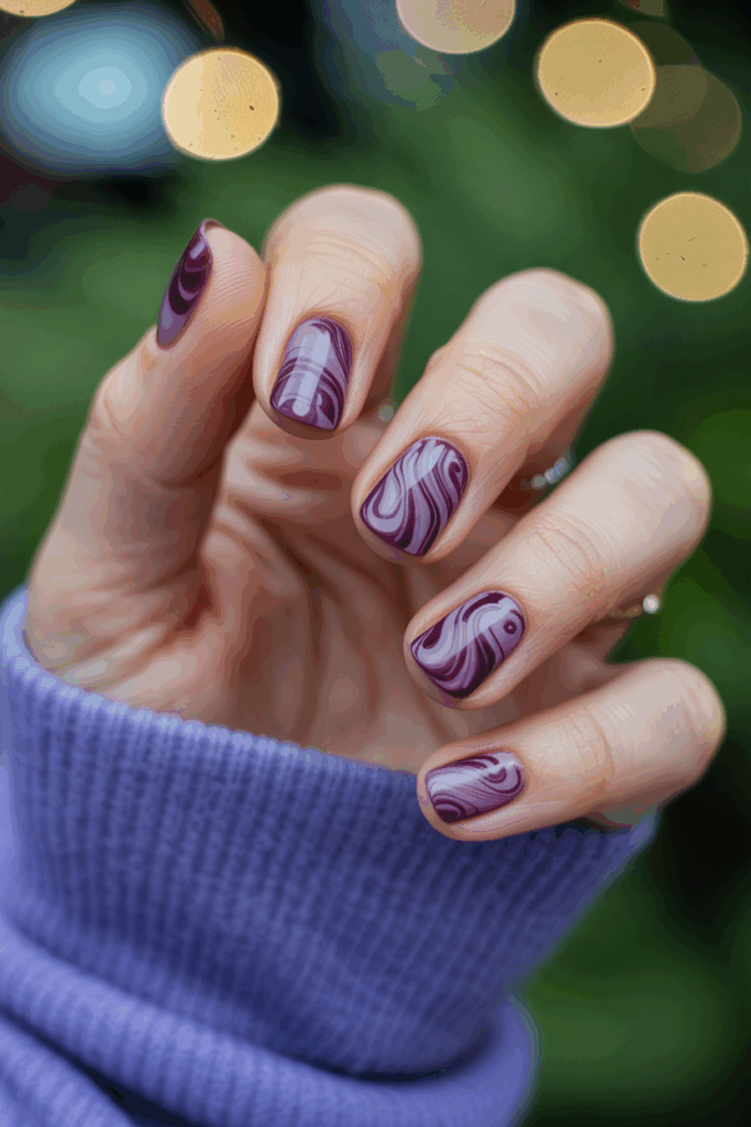 Smoky plum is moody, romantic, and absolutely perfect for the late fall vibe. Adding soft, swirling white lines gives it a wintery, windswept look without any literal holiday symbols. The contrast is gorgeous and instantly feels more festive.