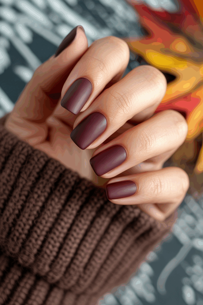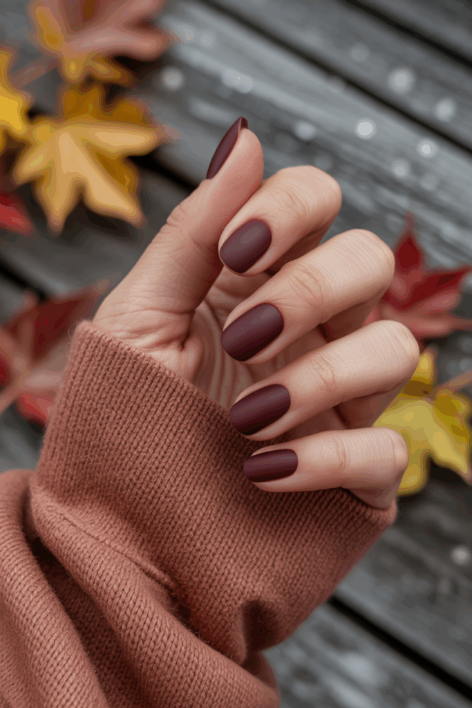 Deep burgundy nails are a stunning choice for fall. This rich shade adds a touch of sophistication to any look. The matte finish enhances the color, making it perfect for cozy gatherings or quiet nights in.