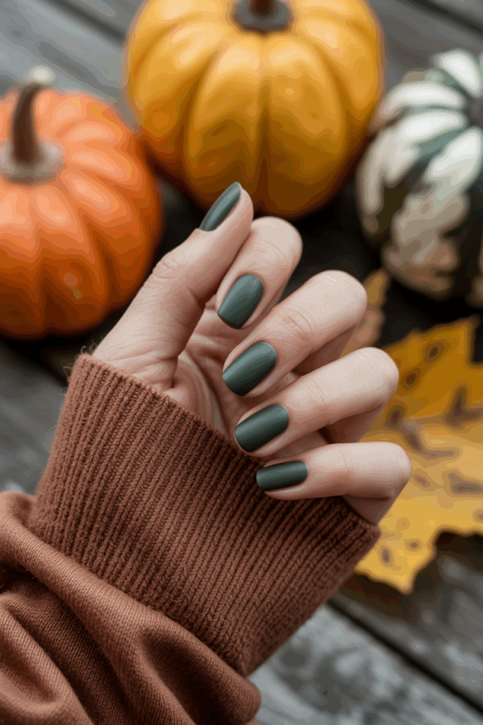 This look is not just about the color; it’s about embracing the season. Pairing forest green nails with a comfy sweater makes for a perfect autumn day. Whether you’re curled up with a book or enjoying a cup of tea, these nails are a stylish complement to your fall activities.