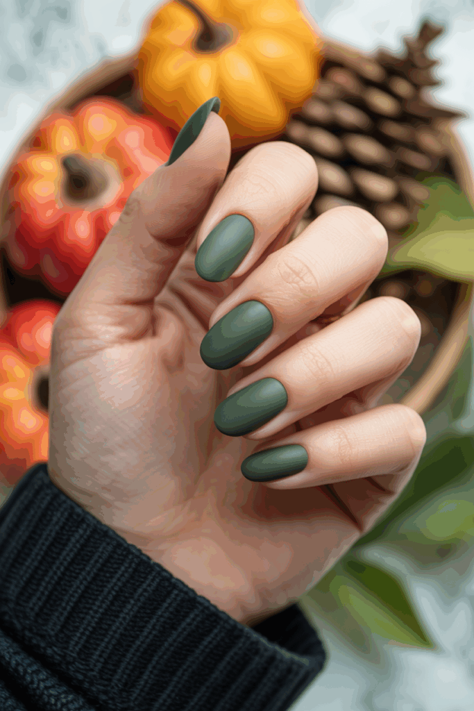 Muted olive green is a stunning choice for fall nails. This color brings a sense of calm and connection to nature, making it perfect for the season. The matte finish adds a modern touch, elevating the overall look.