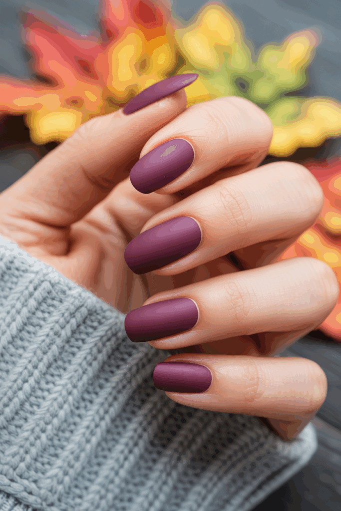 Deep burgundy nails bring a touch of sophistication to any fall look. This rich color perfectly complements the cozy vibes of the season. The matte finish adds a modern twist, making it a stylish choice for anyone looking to elevate their nail game.