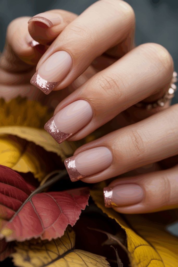 The way the glitter catches the light adds a bit of fun, making your nails pop without being too flashy. It’s a great way to embrace the fall season while keeping things elegant.