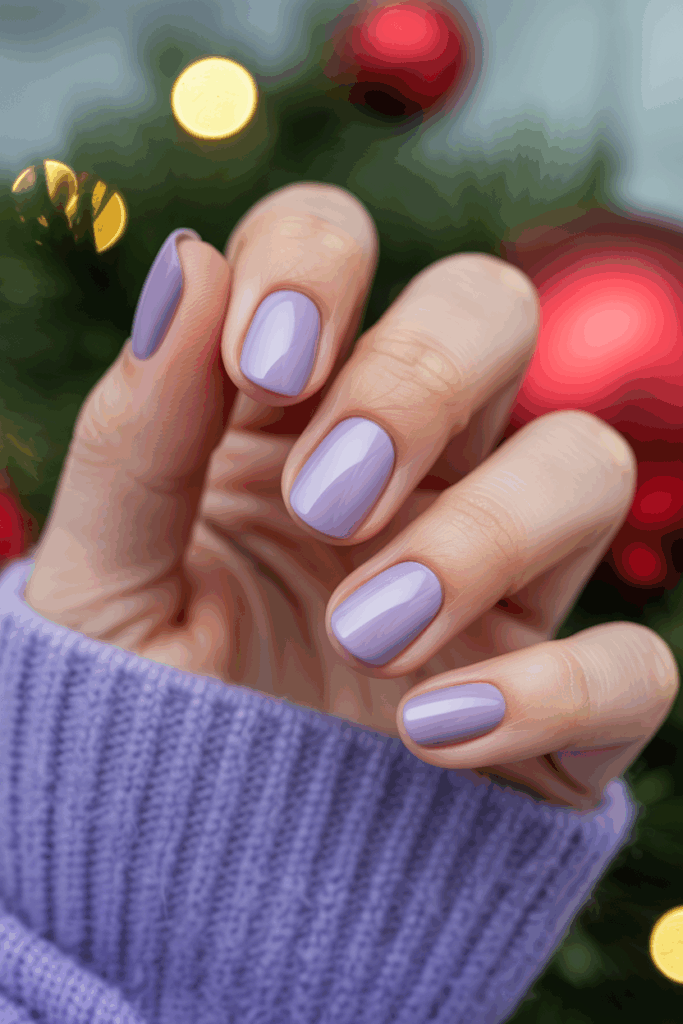 This nail design features a soft lavender shade that stays subtle and neutral. The glossy finish adds a sleek, polished look without being too bold. It suits those who want a gentle pop of color for the holiday season while keeping an elegant style.