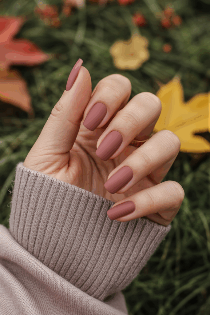 Dusty rose is a lovely choice for fall nails. This soft, muted shade brings warmth and elegance to your look. The matte finish adds a modern twist, making it perfect for any occasion.