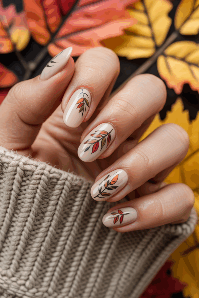 Pairing these nails with cozy fall elements, like pumpkins and candles, enhances the overall vibe. The earthy tones of the decor harmonize with the sandy beige, making it a perfect match for autumn aesthetics. Whether you’re sipping a pumpkin spice latte or enjoying a cozy evening, these nails will surely catch the eye.