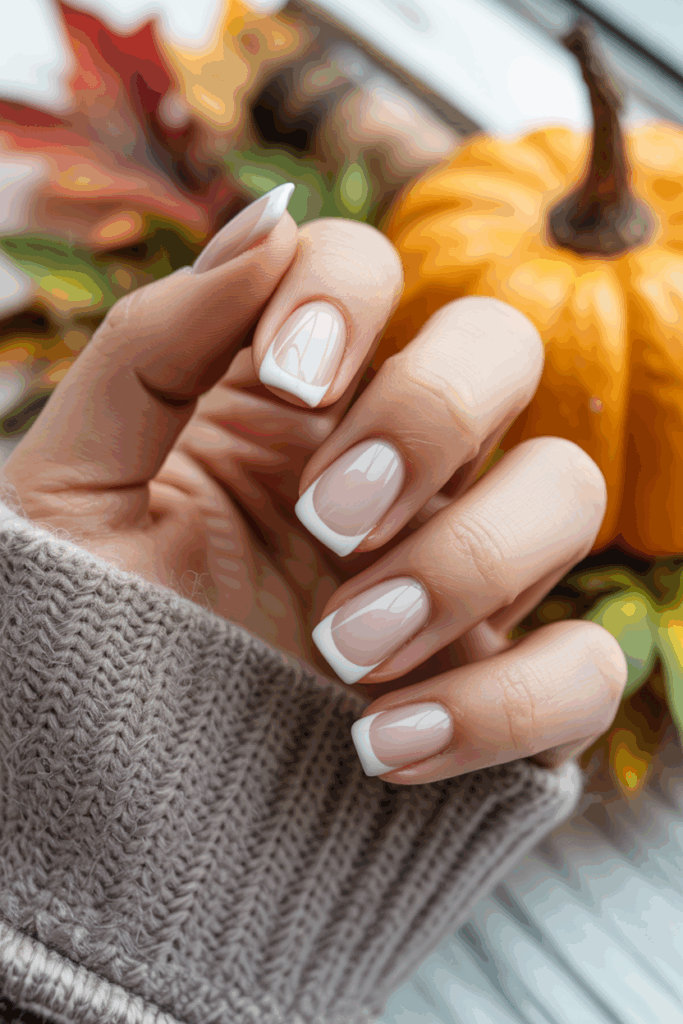 Light taupe with French tips is a chic choice for fall nails. This design combines a soft, neutral base with a classic white tip, creating a stylish and polished look. The taupe color is warm and inviting, perfect for the cozy vibes of autumn.