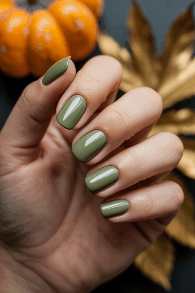 Whether you’re heading to a casual gathering or a cozy night in, muted olive green nails can complement any outfit. Pair them with neutral tones or even a pop of color for a fun twist. This design is versatile and easy to achieve, making it a go-to for anyone looking to refresh their nail game this autumn.