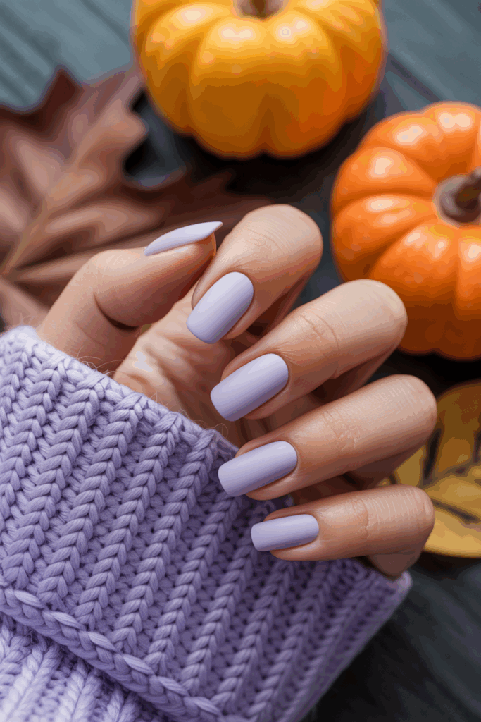 Soft lilac nails are a lovely choice for fall, bringing a gentle touch to your look. The matte topcoat adds a modern twist, making the color pop while keeping it understated.