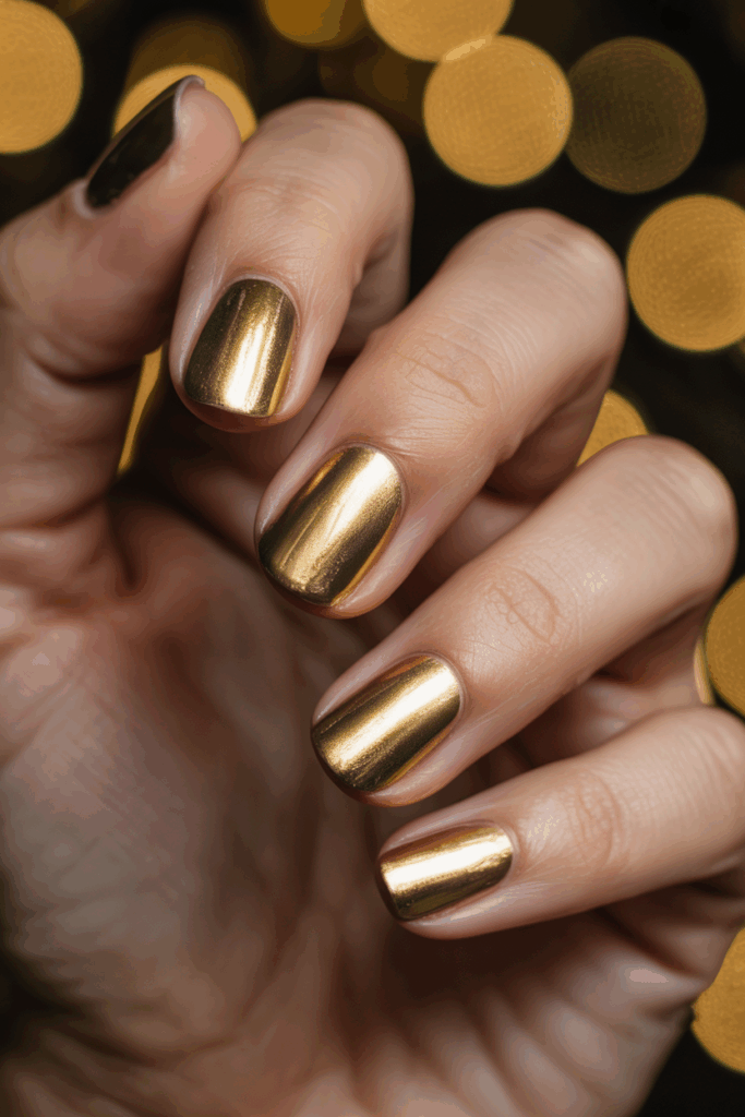 Bold metallic gold nails bring a strong shine to any New Year’s Eve look. They work well with both simple and glamorous outfits. The bright gold finish stands out without needing extra designs. This style suits those who want a confident and polished appearance for the celebration.
