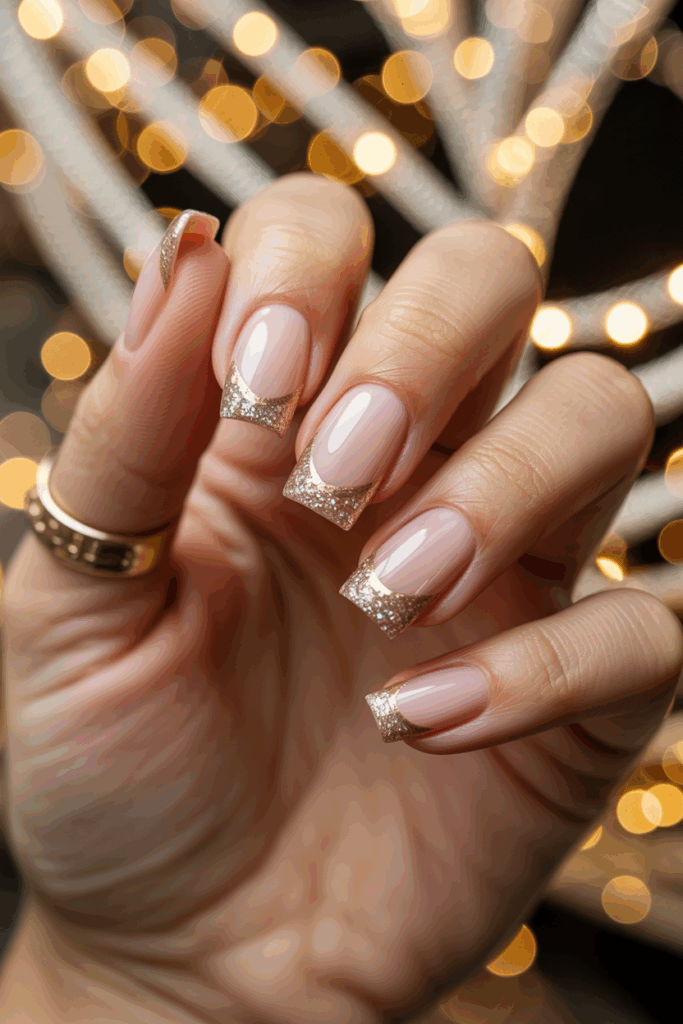 This style features a soft, nude base with glitter that gradually intensifies toward the tip. It creates a smooth, elegant transition that adds sparkle without being too bold. The gradient effect works well for those who want festive nails with a subtle shine.