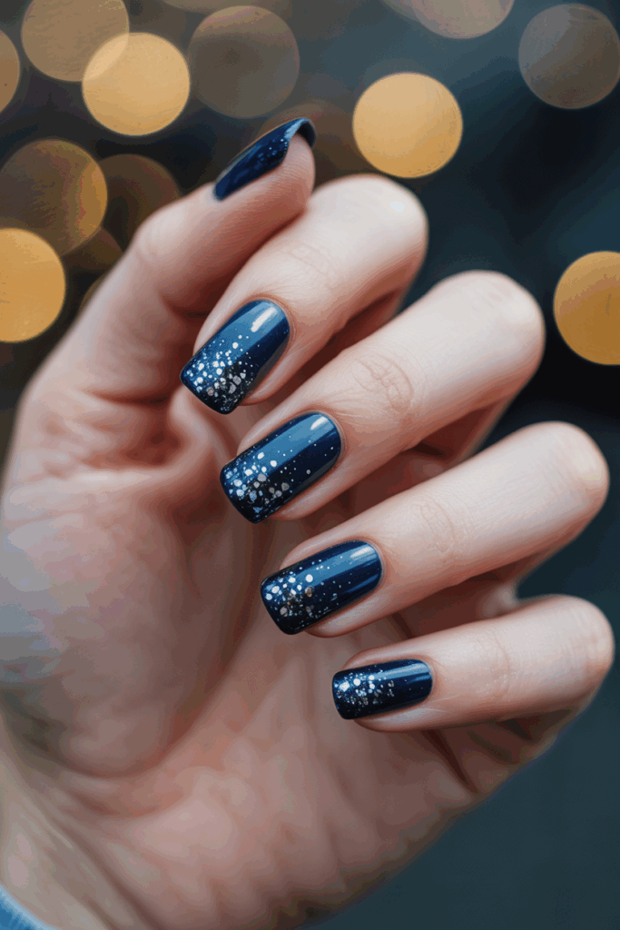 2) Midnight Blue Nails with Scattered Silver Glitter
