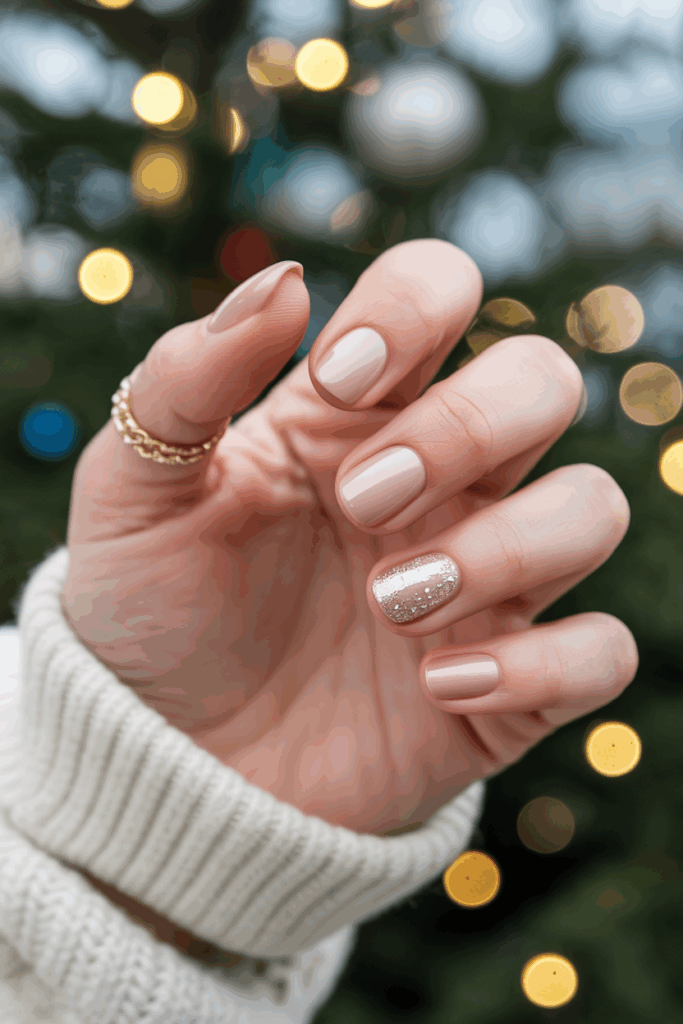 Champagne-inspired nude nails combine soft, neutral tones with a subtle shimmer. They offer a simple yet elegant look perfect for New Year’s celebrations.