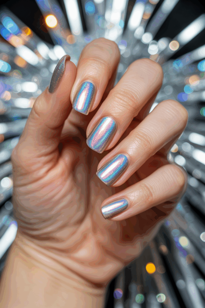 Holographic shine nails offer a sleek and modern look for New Year’s. They reflect light with a rainbow effect, adding subtle sparkle. This style works well for both simple and bold manicures. Many choose holographic polish for its clean yet eye-catching finish.