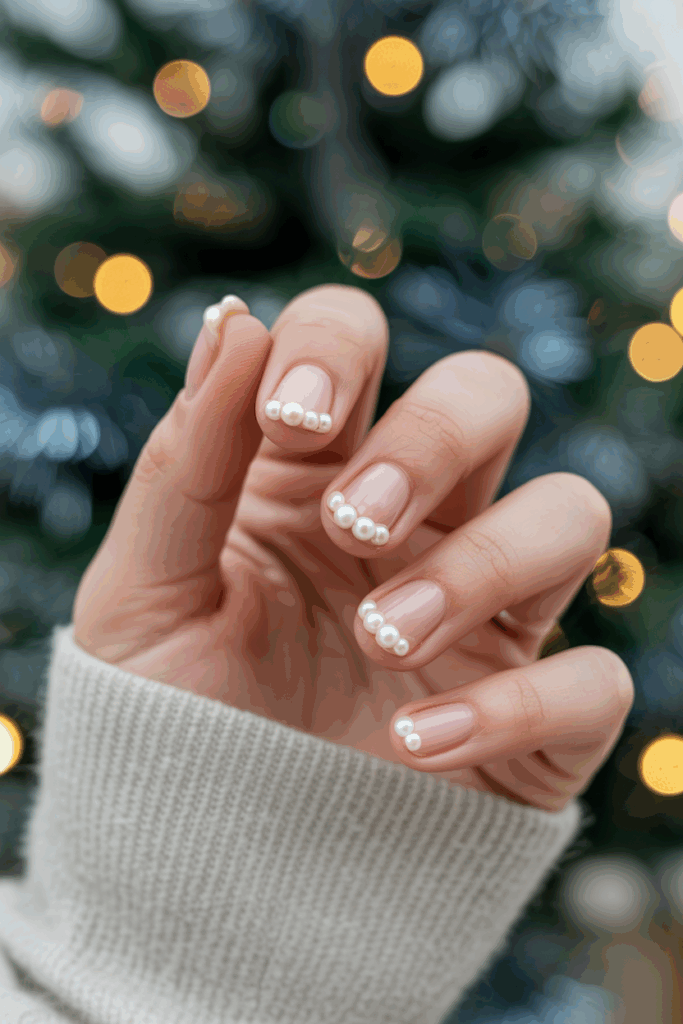 Pearl embellished nails add a simple touch of elegance to any look. They can be worn as accents or cover the entire nail. This style works well for both everyday wear and special occasions like New Year’s Eve.