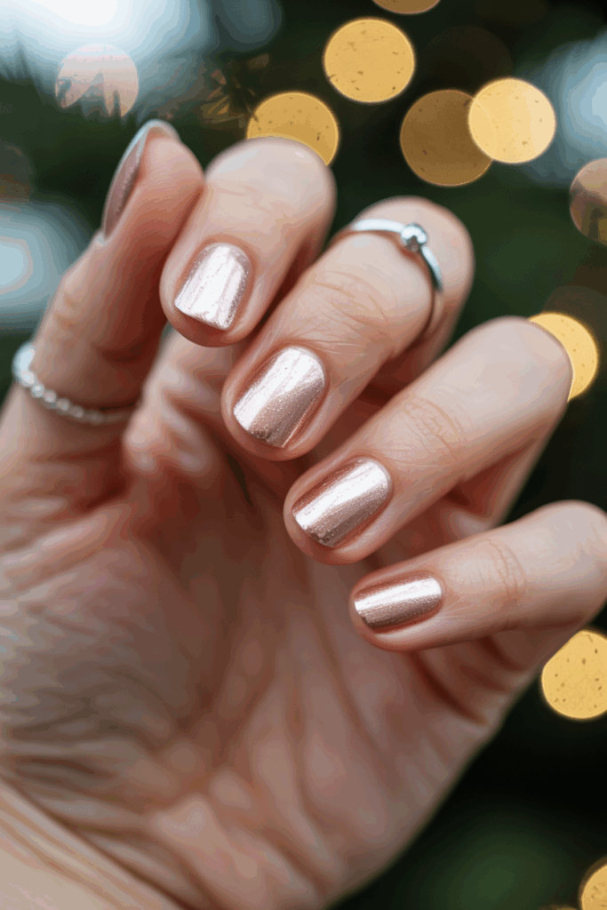 Rose gold metallic nails combine a soft pink with a shiny gold finish. This look adds a touch of elegance that suits New Year’s celebrations well. It works for simple styles or more detailed nail art designs. The finish catches light, making nails stand out without being too bold.