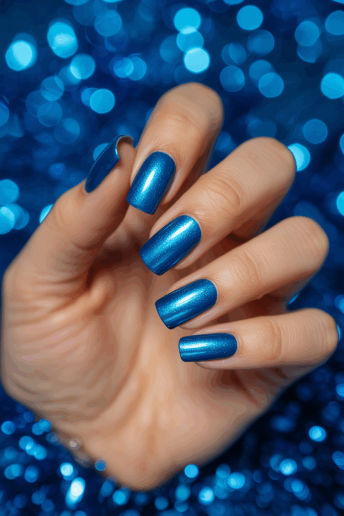 This nail design uses a bright metallic blue shade to add shine and color. It works well for both special events and everyday wear. The metallic finish gives the nails a polished, modern look that stands out without being too flashy.