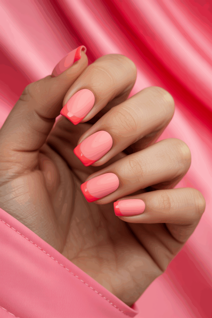 The rest of the nails can be left neutral or painted in soft pink tones. This contrast highlights the neon tips beautifully.
