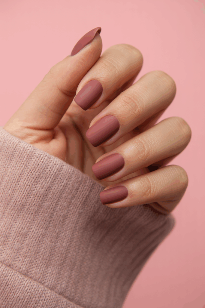 Rose pink velvet nails add a soft, matte look that feels smooth to the touch. This texture gives a subtle depth, different from shiny finishes.