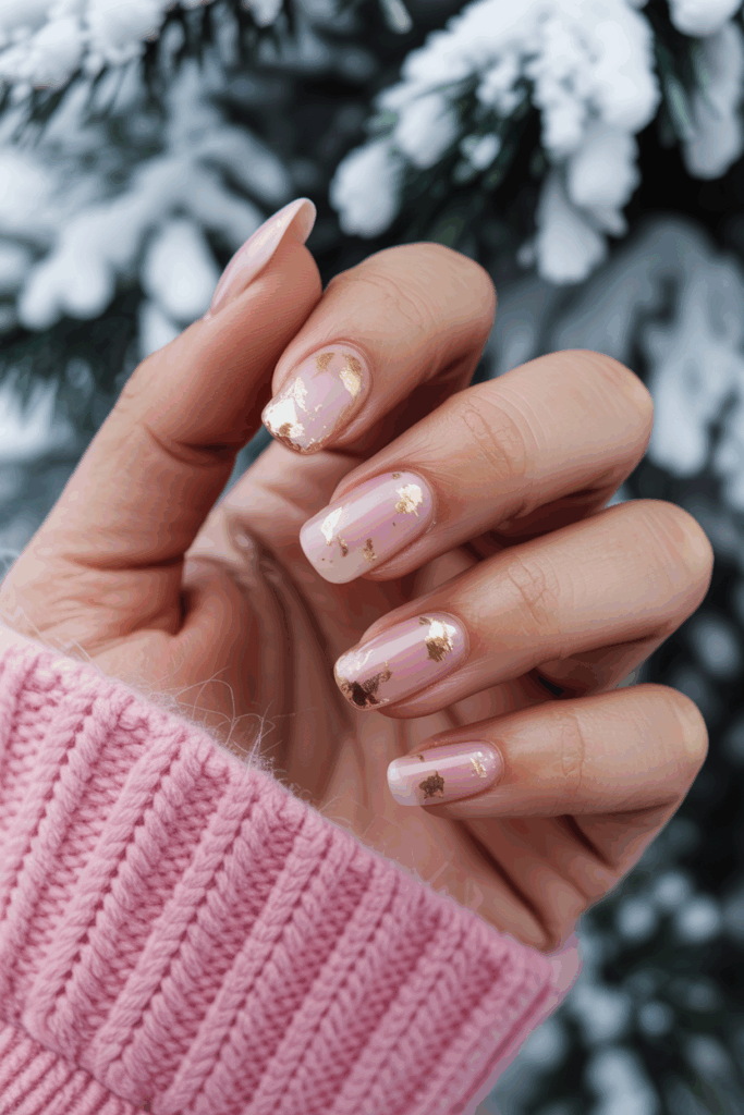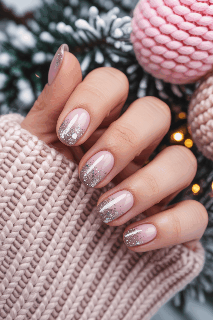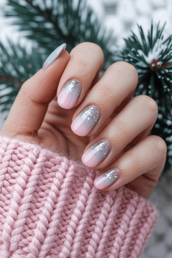 This style combines soft pink shades fading into silver glitter. It creates a gentle sparkle that suits winter well. The look is simple but adds a touch of elegance without being too flashy. It works for both everyday wear and special occasions.