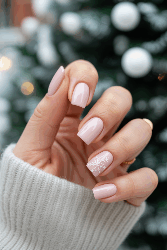 Soft blush pink nails offer a clean and elegant look perfect for winter. The square shape adds a modern edge while keeping the style simple and timeless. This look works well for both everyday wear and special occasions.