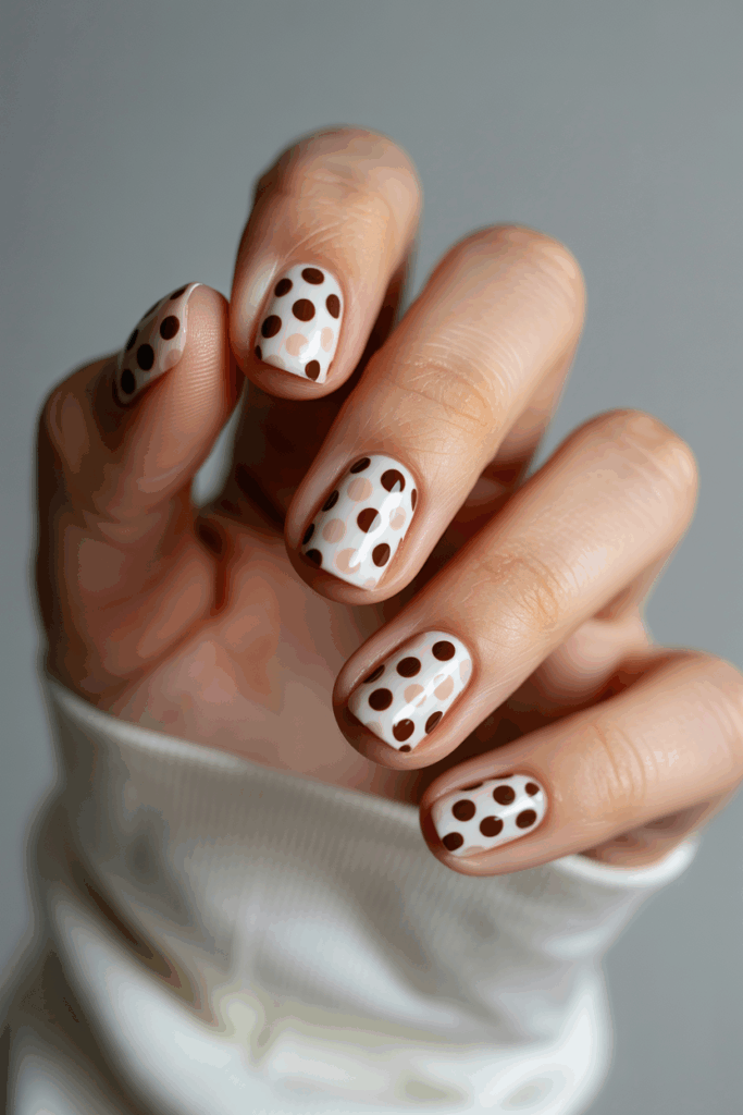 Short nails with dots can be simple or creative. Bold dots create a striking look, while smaller dots offer a subtle, chic touch.
