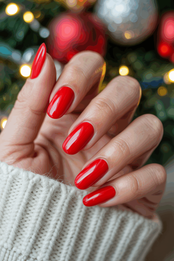 A glossy red manicure remains the gold standard of holiday nails. The shine enhances the rich pigment, making hands look polished and refined. It’s an easy go-to that complements any outfit—from an elegant cocktail dress to a cozy winter sweater. The timeless appeal of glossy red nails never fades, proving that simple can still be stunning.