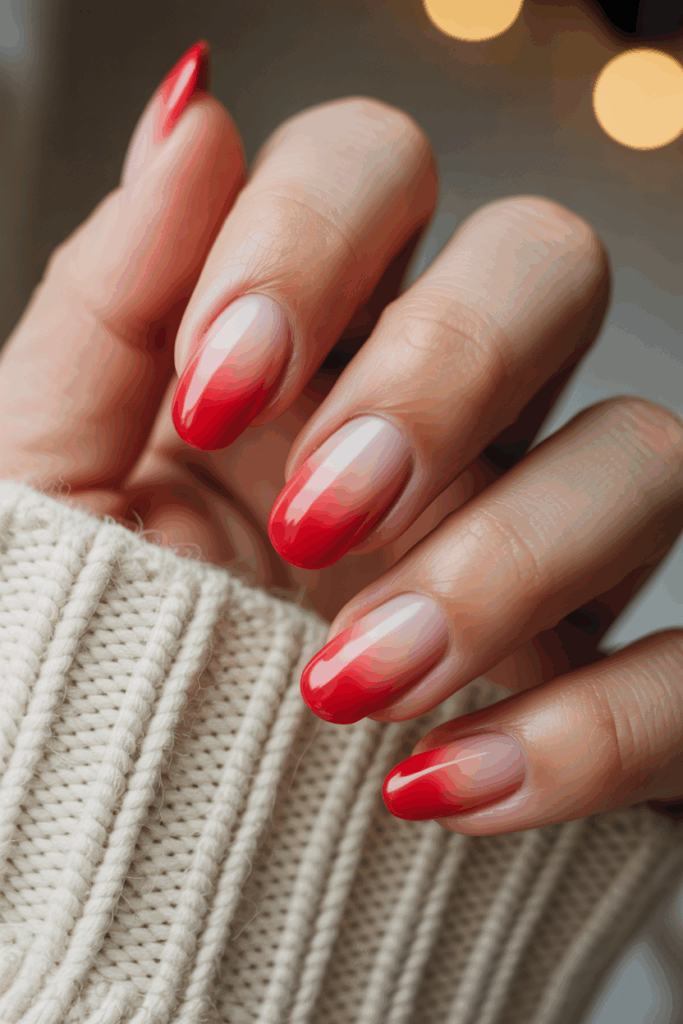 A red-to-nude ombre creates a graceful transition from bold to natural. The fade effect softens the brightness of red, blending it into a flattering, subtle tone. This manicure feels sophisticated and versatile, perfect for both everyday wear and festive occasions. The gradient design elongates the nails, adding a touch of modern artistry.