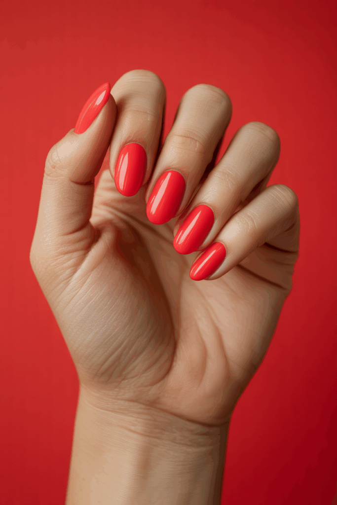 Glossy fiery red nails give a classic and bold look. They catch light well and add a smooth, shiny finish. This style suits many occasions, from casual days to formal events. It highlights confidence without needing extra details.