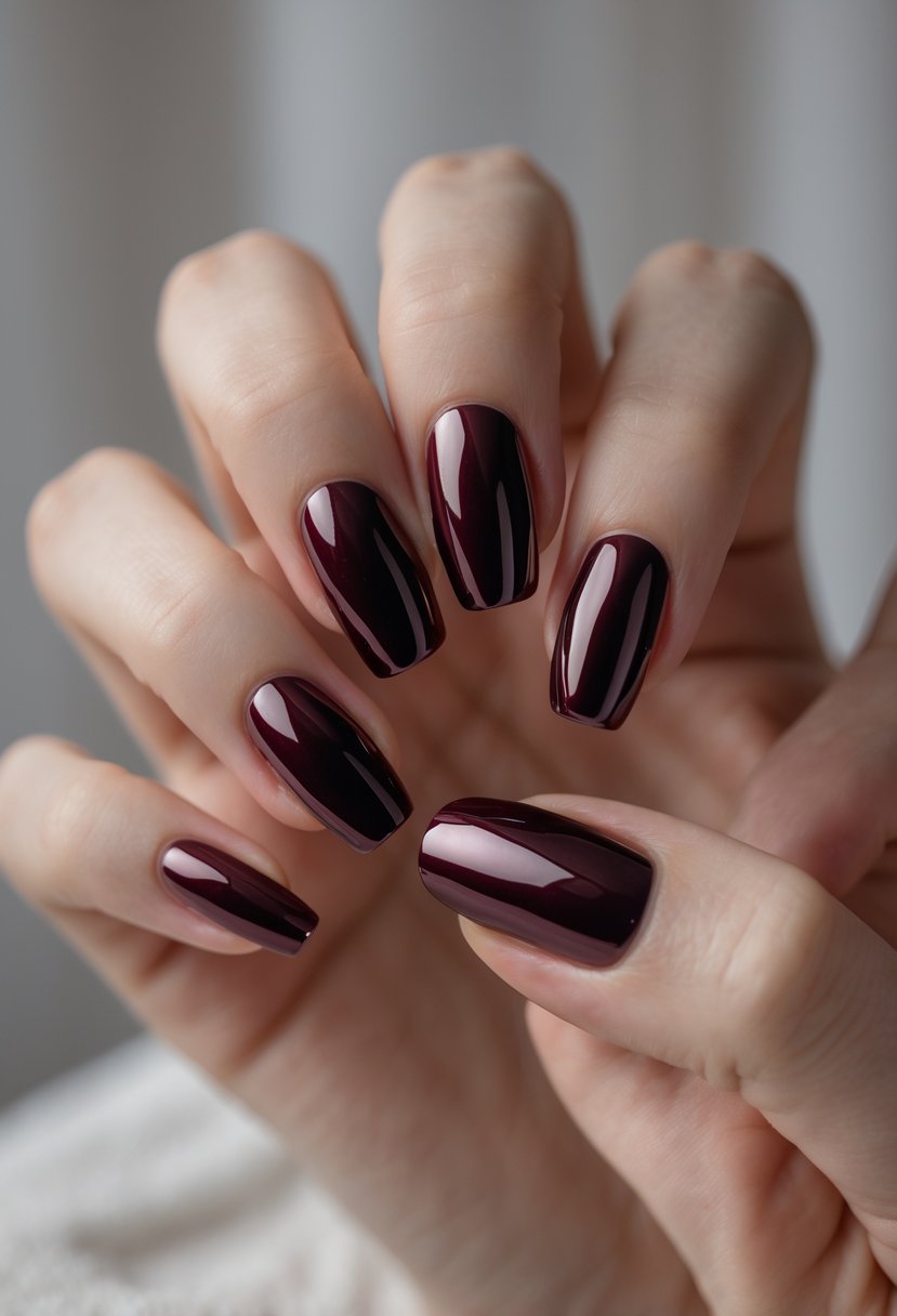Dark red chrome nails offer a modern twist on a classic color. The shiny, metallic finish adds depth and a bold look. This style works well for both special events and everyday wear. It especially suits medium to deep skin tones, enhancing warmth and richness.