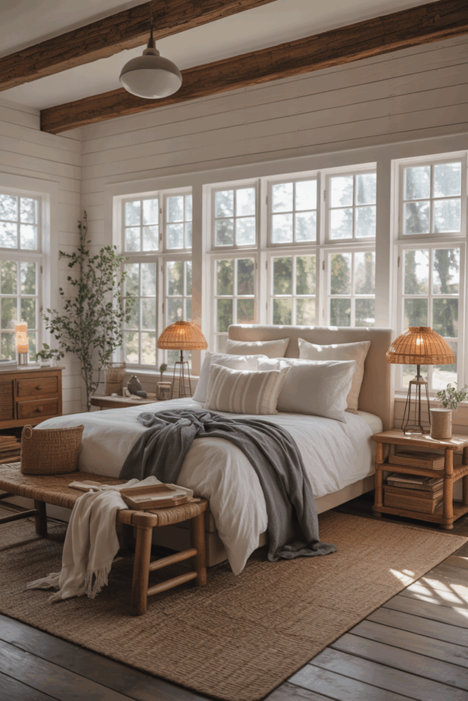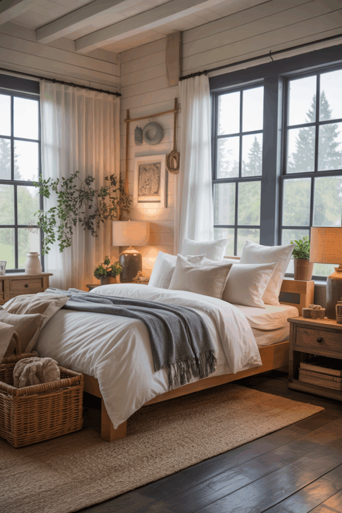 Incorporating rustic accents allows for endless customization while keeping the space cozy and personal. Add natural décor like woven baskets, greenery, or stone-inspired accessories to enhance the cabin-like feel, or mix in modern elements for a rustic-modern twist. Whether you’re aiming for a full farmhouse retreat or just a few warm touches, rustic bedroom ideas make it easy to create a serene, charming sanctuary that reflects your style and offers a perfect place to unwind.
