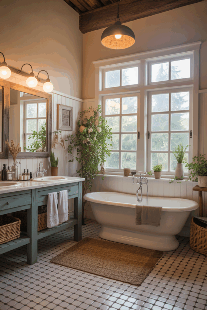 Rustic bathrooms are also highly versatile and customizable. You can blend farmhouse charm with modern conveniences, mix dark woods with lighter neutrals, or add touches of greenery for freshness. Small accents like vintage mirrors, antique hooks, and natural soap dispensers make a big impact without overwhelming the space. Whether your bathroom is small or spacious, rustic bathroom ideas allow you to create a stylish, functional, and relaxing retreat that feels timeless and inviting.
