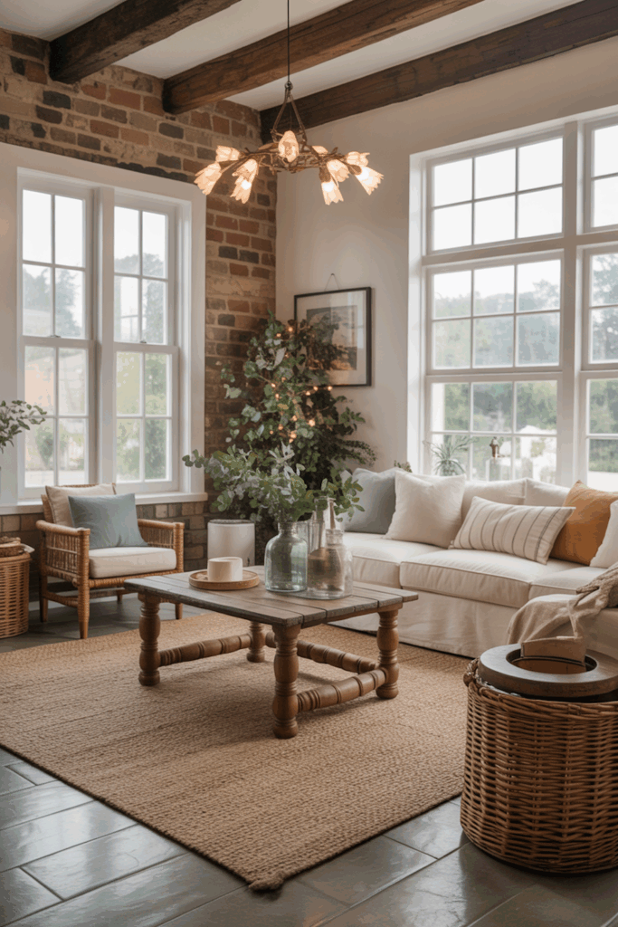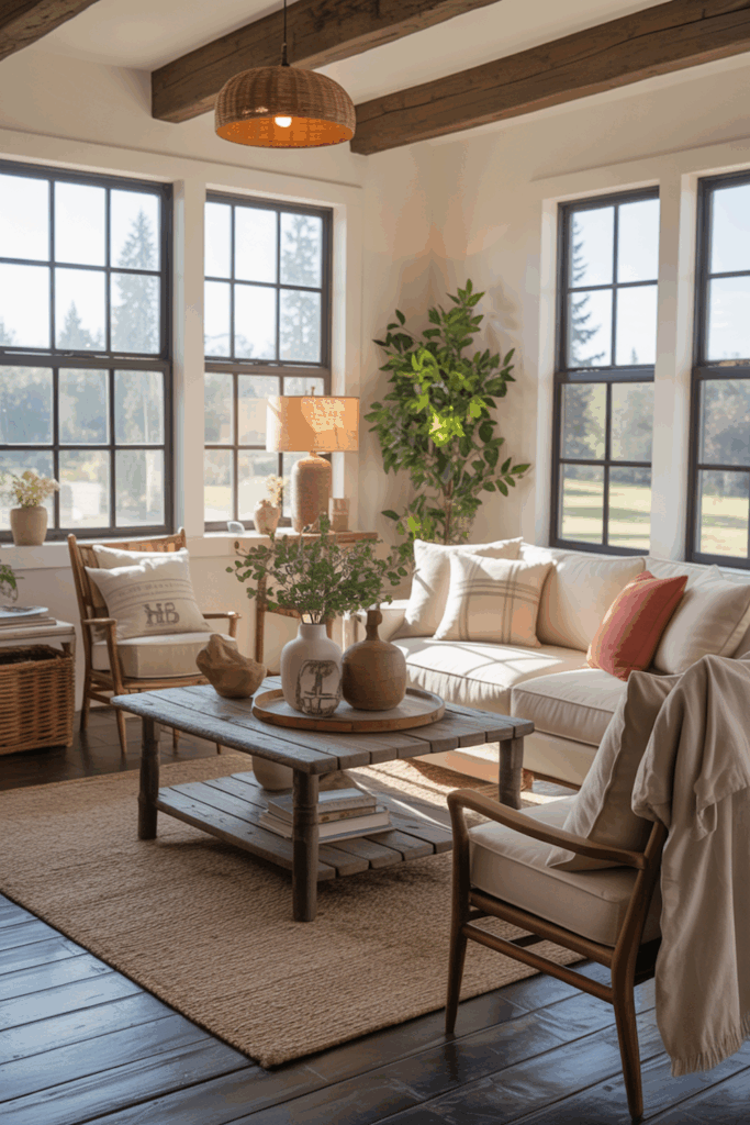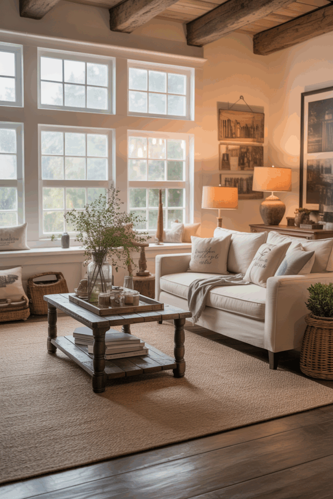 Rustic living room design is highly adaptable, making it easy to incorporate farmhouse, cabin-inspired, or even rustic-modern elements. Seasonal décor like autumnal wreaths, greenery, or simple floral arrangements adds charm throughout the year. Even in smaller spaces, rustic ideas can make a big impact by layering textures, adding statement furniture, and using warm, natural tones. The result is a living room that feels both stylish and lived-in—a perfect retreat for relaxing, entertaining, or enjoying cozy family moments.