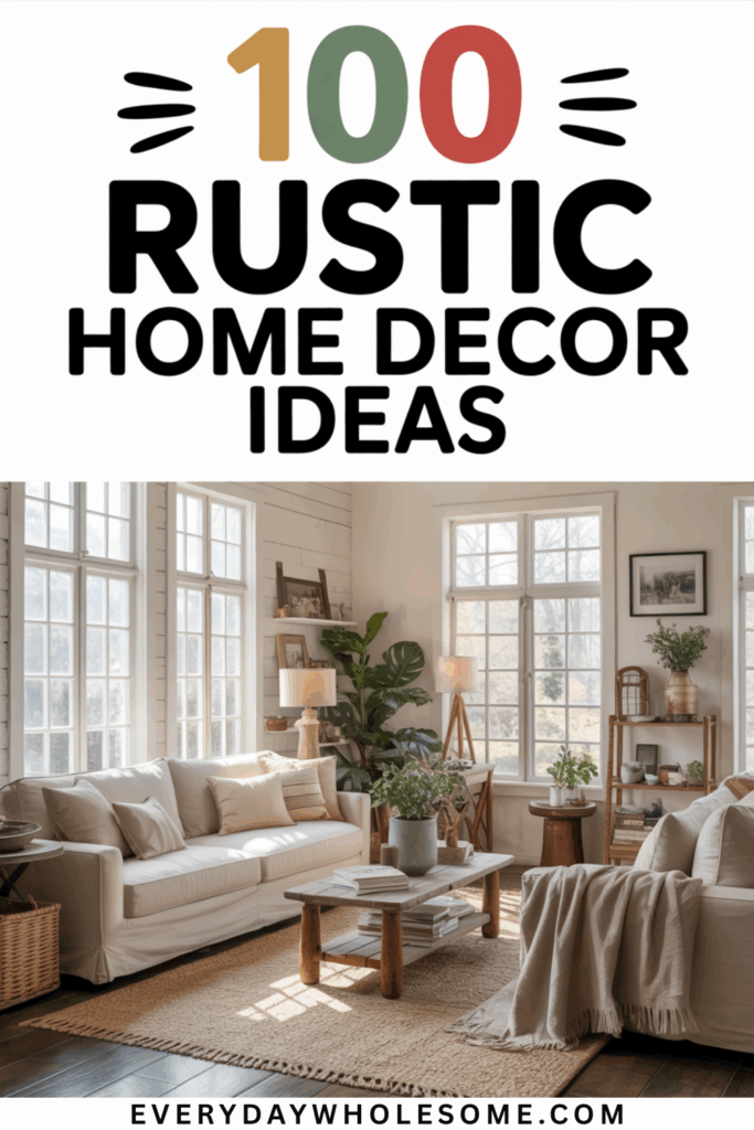 My Top 100 Best Rustic Home Decor Ideas for your Farmhouse Kitchen, Living Room, Bedroom, Outdoor, Front Porch. Use these everyday including fall, Christmas and wedding ideas. There are clocks, wall hangings, wall sconces, lighting fixtures, lots of wood, plants, wooden trays, coasters, maps, dream catchers, some more southwest or farmhouse or modern.