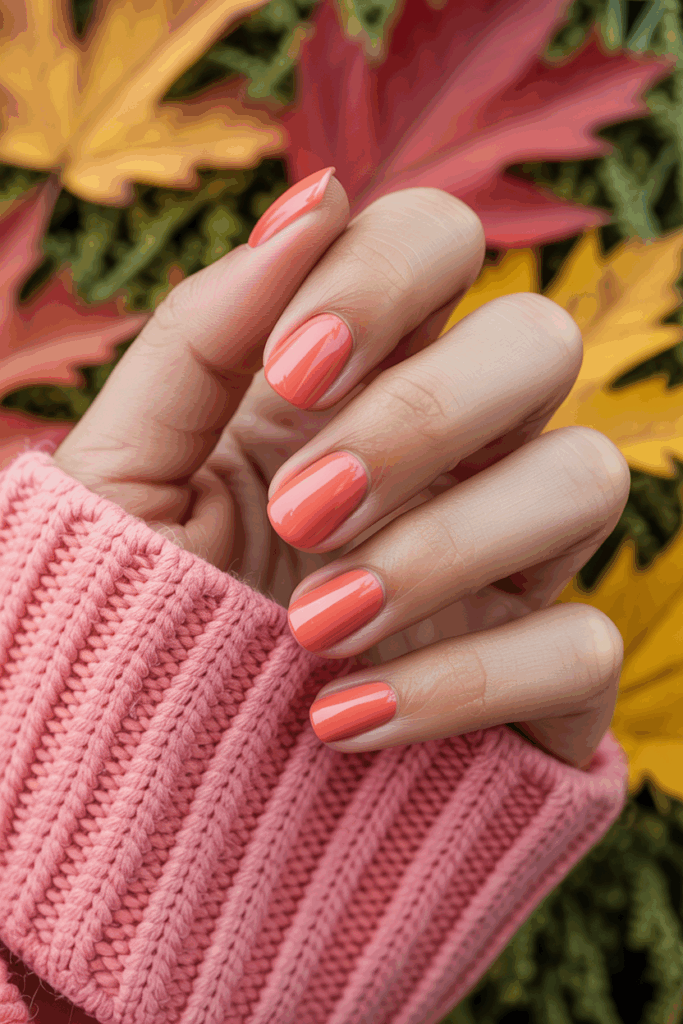 Bright coral highlights add a fresh and lively touch to September nails. They work well with both short and long nail shapes. This color fits the transition from summer to fall, bringing warmth without being too bold.