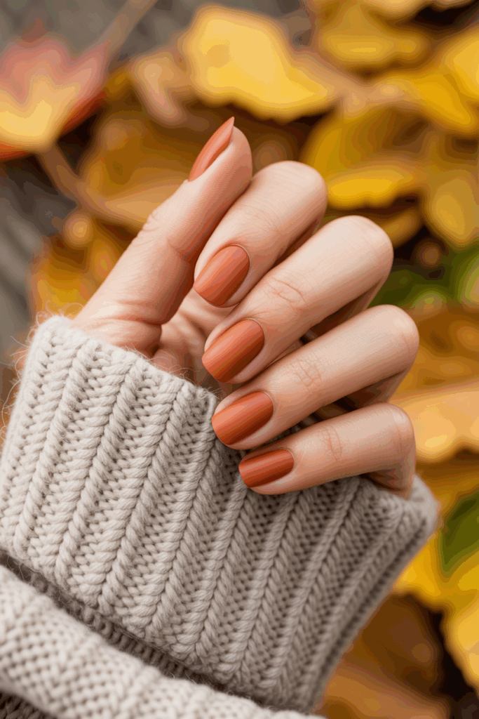 The muted cinnamon shade offers a warm, soft look perfect for September. It blends brown and orange tones gently, fitting both late summer and early fall styles. This color suits anyone seeking a subtle but cozy nail option for the season.