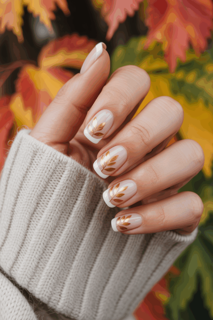 Gold foil detailing adds a subtle shine without being too flashy. It pairs well with deep fall colors like maroon or green. This look is simple but elegant, making it ideal for early fall. It works on short or almond-shaped nails for a polished finish.
