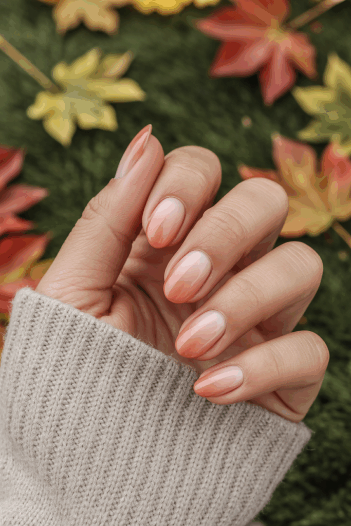 Soft peach ombre nails offer a gentle blend of warm, light tones. This style suits many occasions, from casual days to more formal events.