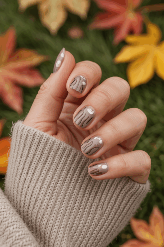 The neutral palette makes it versatile for any outfit, while the added texture brings a unique, handcrafted vibe. Perfect for fall, these nails blend elegance with a trendy, nature-inspired aesthetic that feels warm and stylish for the season.