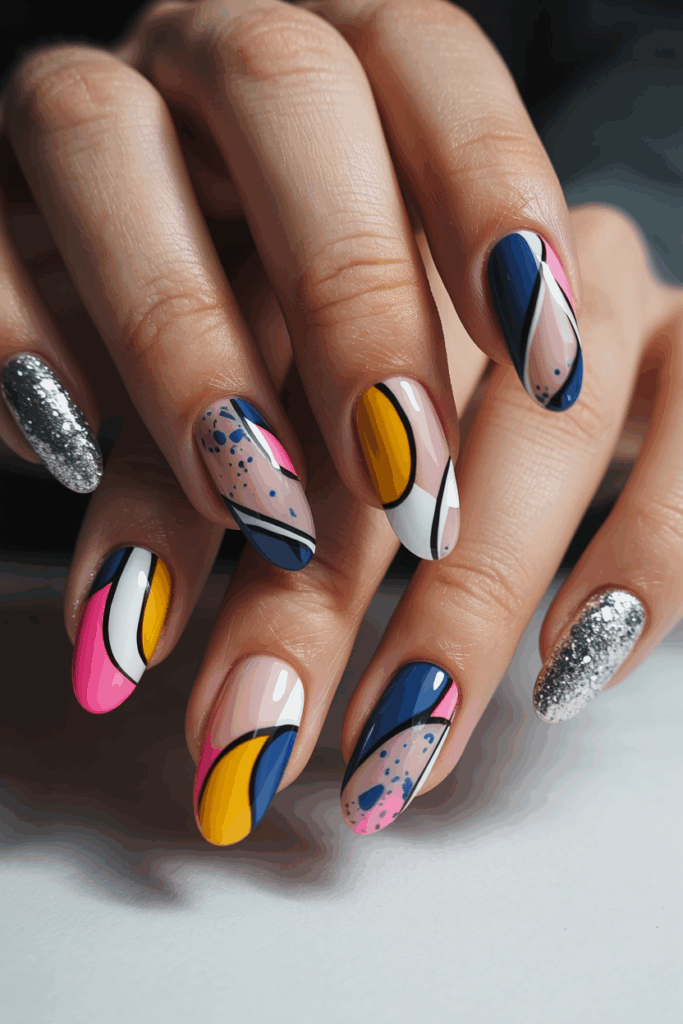 Abstract designs balance simplicity with creativity, making them easy to wear daily. They complement the natural elegance of almond nails while standing out as a fashionable choice.