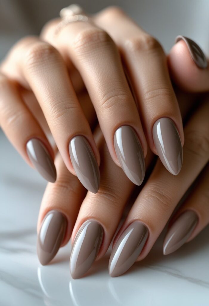 Classic neutral shades like beige, soft pink, and taupe are ideal for short almond nails. These tones enhance the nail’s shape without overwhelming it, offering a polished and timeless look.