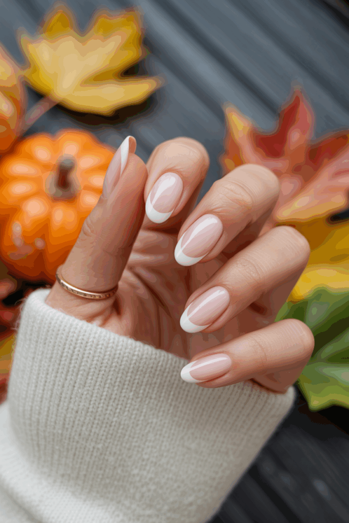 The white tip contrasts subtly with the nude or clear base, making these nails suitable for both casual and formal occasions. This style is timeless and adapts well to various outfits and settings.