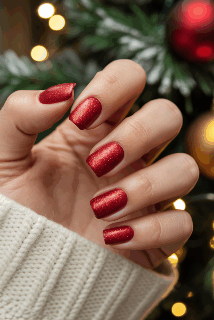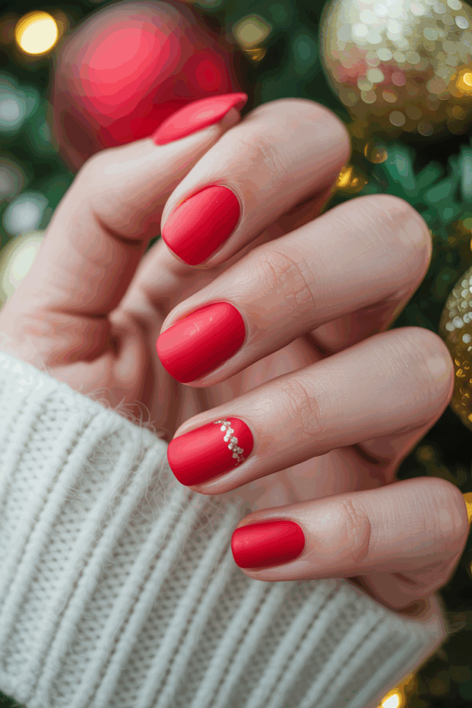 Classic red matte nails are simple and elegant for the holiday season. The matte finish adds a modern touch while keeping the look understated.