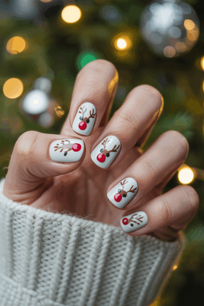 Reindeer nail art is a popular choice for short nails during Christmas. Simple designs with small reindeer faces or full figures work well on the limited space.