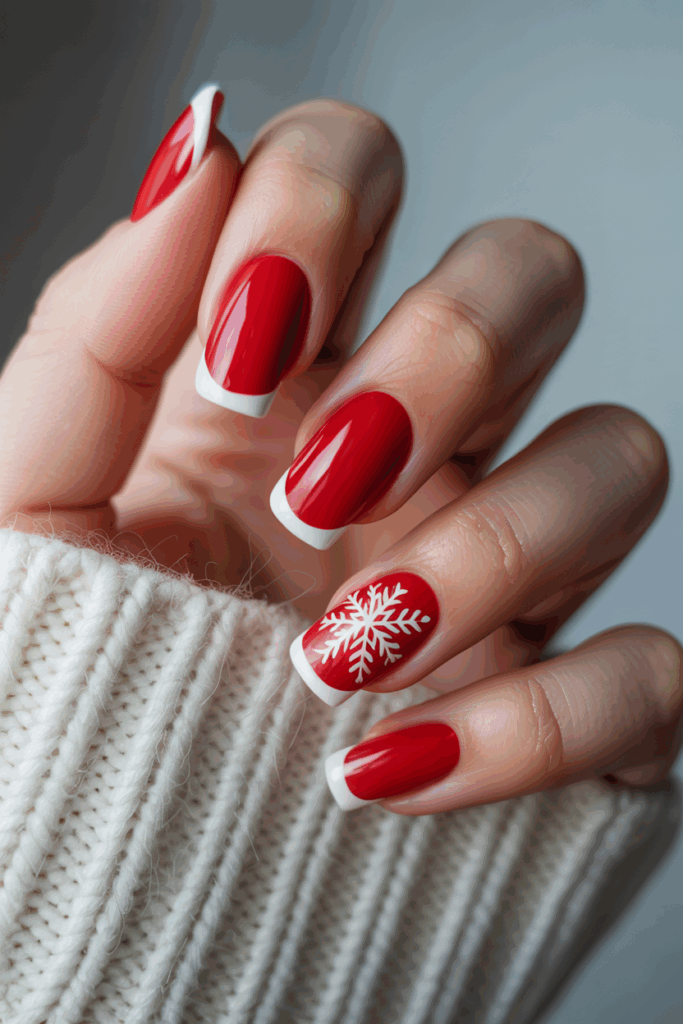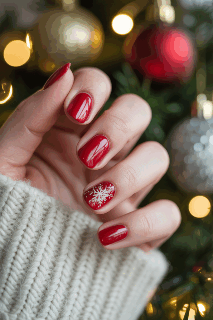 Adding a small glossy detail or a subtle snowflake on one nail can create interest without clutter. It suits those who want festive nails without extra length or bold designs.