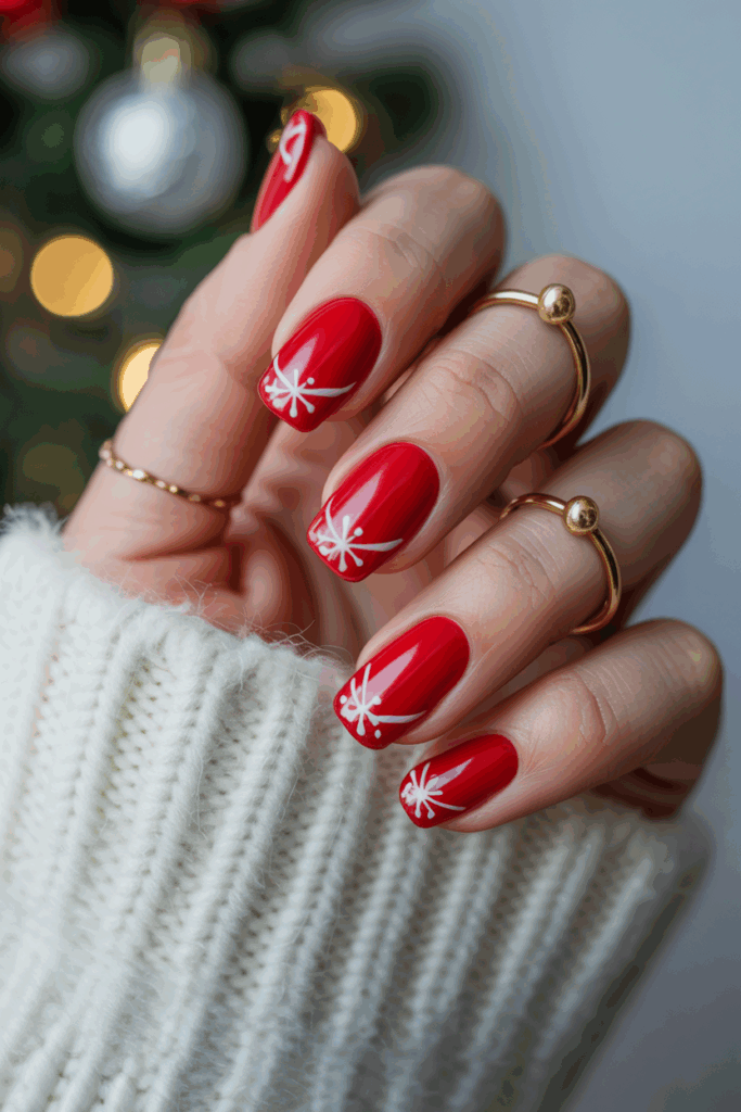 This style suits anyone who wants a classy holiday nail design that is easy to wear. It does not overpower short nails but still adds festive detail.
