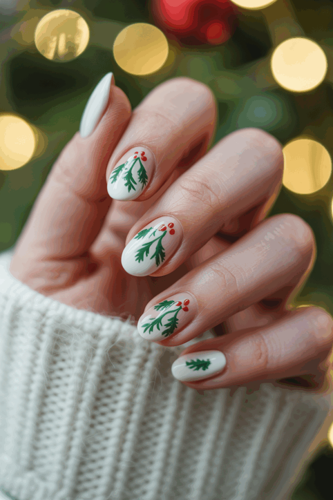 Short nails with mistletoe art are practical for the holidays. They bring charm without needing long nails, making them a good choice for everyday wear.