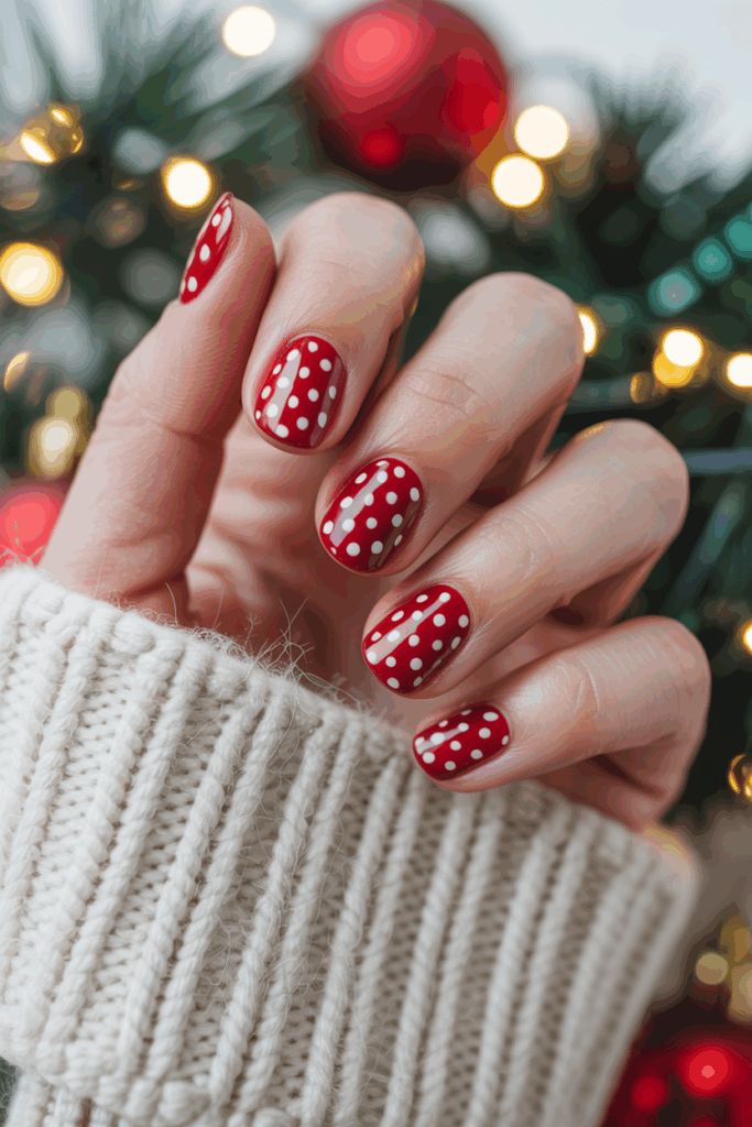 It is easy to recreate using basic tools like a dotting tool or toothpick. The style suits both casual and formal holiday looks.
