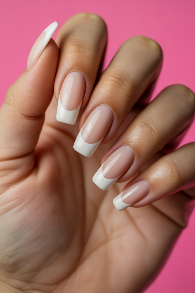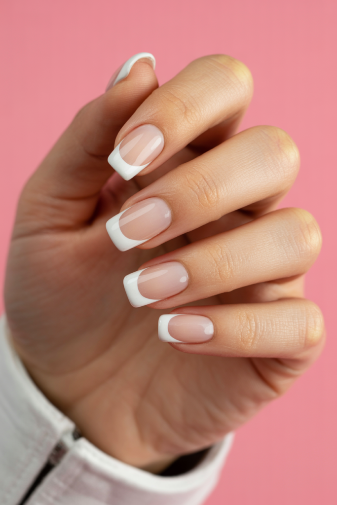 The classic French manicure features clean white tips on a natural or pale pink base. It is simple and timeless, suitable for any occasion. This style works well on all nail lengths and shapes, offering a neat and polished look. Many choose it for its elegance and versatility.