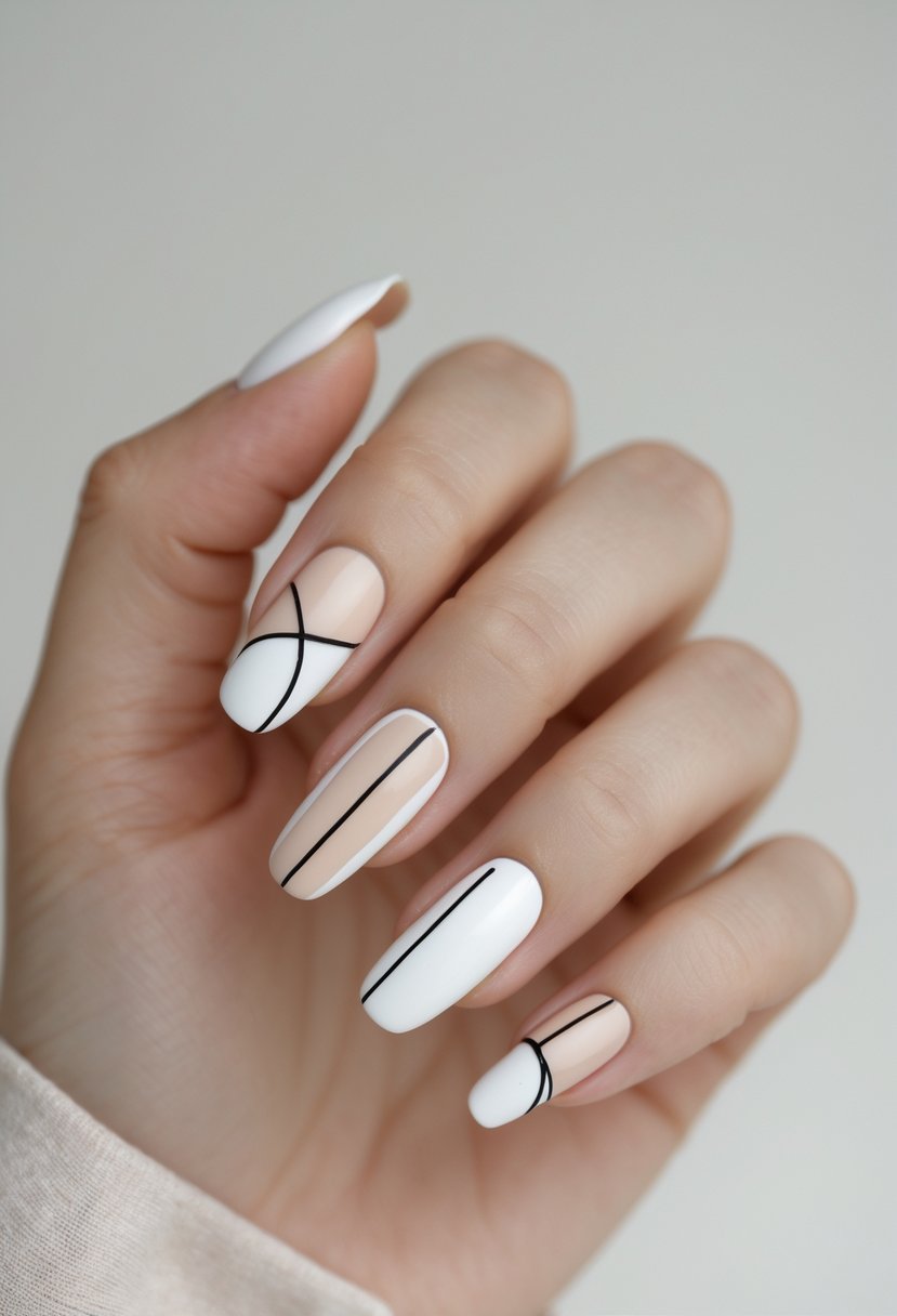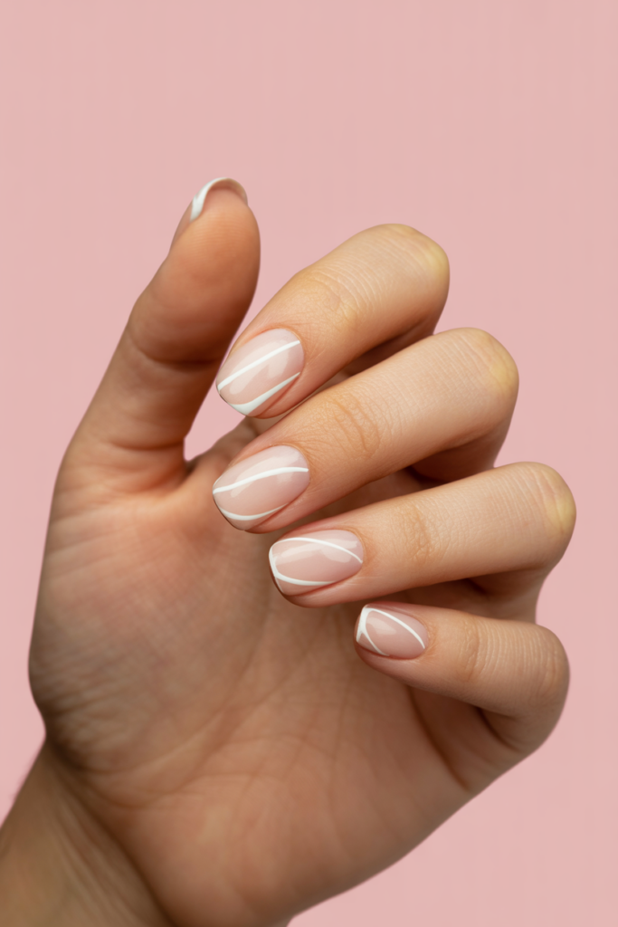 Clean white lines create a simple yet stylish look. They add subtle detail without being flashy. This design works well on any nail shape or length.