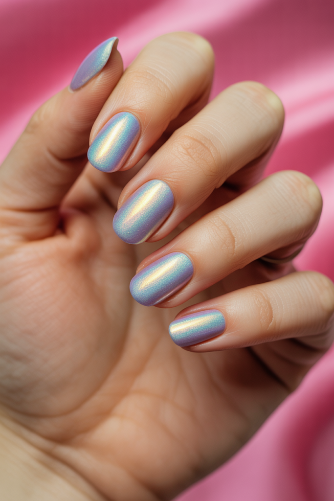 Iridescent sheen nails create a soft, shifting glow that changes with the light. They offer a fresh, modern look without needing complex designs.